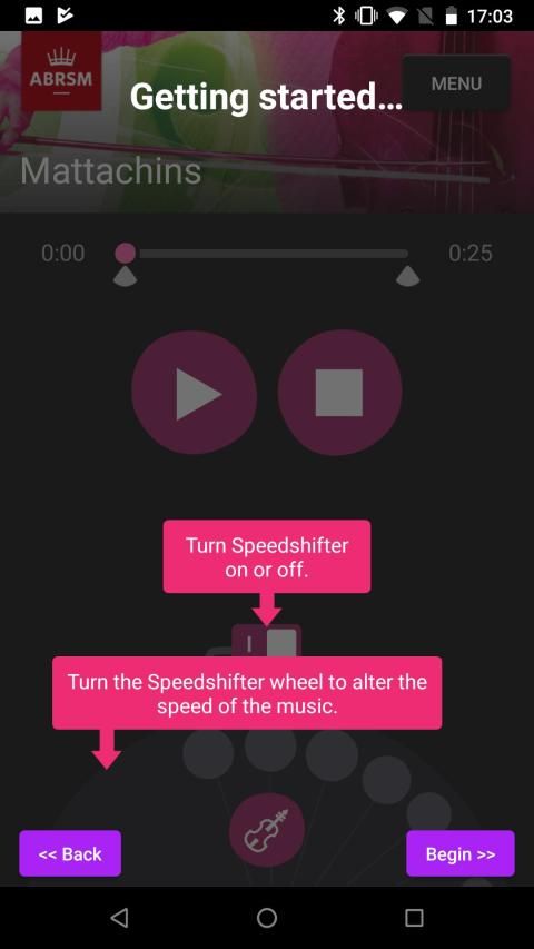 • Slow down or speed up the music to a tempo that suits you, for slow careful practice.