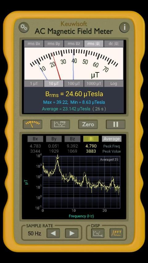 Turn your device into an AC magnetic field meter by using its magnetic field sensor.