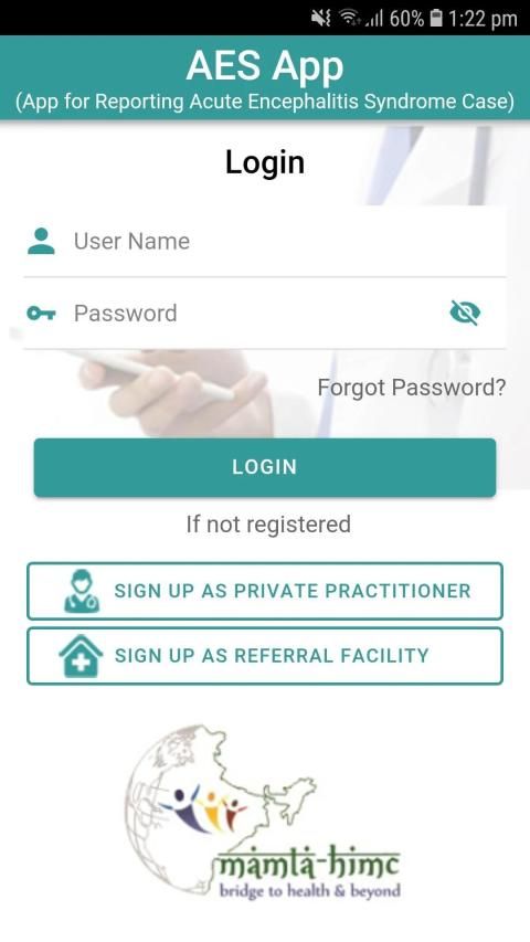 This app will be used by private practitioners to notify cases of Acute Encephalitis Syndrome (AES) in seven districts of Eastern UP. The app will also be used by Encephalitis Treatment Centres (ETC) to notify and report outcome of treatment of AES cases.