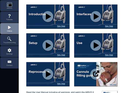 यह ऐप फिशर और पकेल हेल्थकेयर के Airvo 2 के उपयोगकर्ता इंटरफ़ेस का अनुकरण करता है, जिससे आपको यह जानने में मदद मिलती है कि Airvo का नवीनतम संस्करण कैसे काम करता है।