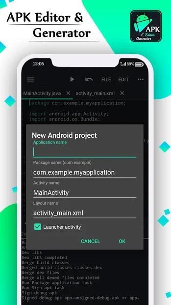 एंड्रॉइड फोन / टैबलेट के अंदर एपीके बनाने के लिए एक साधारण आईडीई।