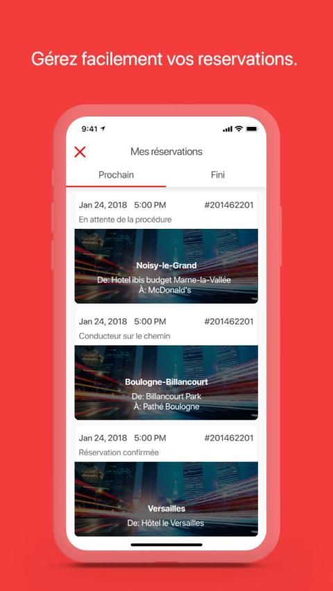 • Une fois la réservation effectuée, consultez les informations et l’indice de satisfaction de votre chauffeur.