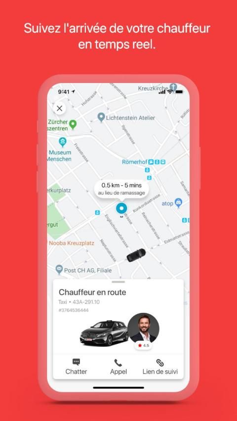 • Suivez l’arrivée de votre chauffeur en temps réel depuis votre smarphone