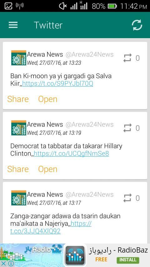 There's no denying the fact that 20,000+ users downloaded AREWA24 News - Labarai latest version on 9Apps for free every week! This makes the app feel more like a popular merchandise, which is very positive in my opinion. This hot app was released on 2016-07-31. I believe that if you are an android apps lover, you would not miss it.