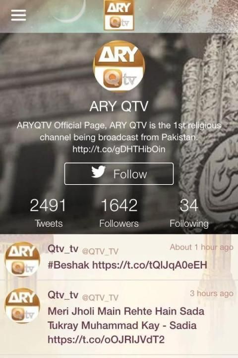 ARY Qtv (formerly Quran TV) is a Pakistani television channel with religious focus, producing programs mainly focusing on various major schools of thought in Ummah. QTV is part of the ARY Digital Network. The channel has shows featuring well-known scholars such as Dr. Muhammad Tahir-ul-Qadri, Mufti Abu Bakr, Mufti Akmal, Mufti Sohail Raza Amjadi, and Mufti Muhammad Aamir. Other shows include Qur'an teachings, hadith, talk shows, question and answer shows, Qawwali music and Naat poetry etc.