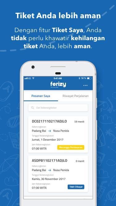 ASDP Ticket - Ferizy adalah Official Mobile Application dari PT. ASDP Indonesia Ferry (Persero) yang hadir untuk memudahkan pengguna jasa dalam memesan tiket berjadwal di manapun dan kapanpun, mendapatkan informasi terkait berita ASDP, layanan pelanggan, fasilitas pelabuhan dan kapal milik PT. ASDP Indonesia Ferry (Persero). Aplikasi ini gratis, fleksibel, dan mudah digunakan.