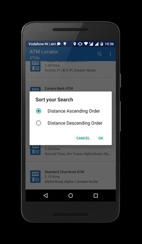 • Gives a list of ATMs in the range of 1 to 10 kms around you.