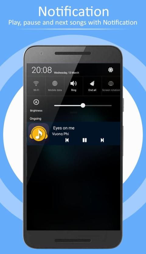 ★ Notification control: Control music form notifications, play, pause, next and back