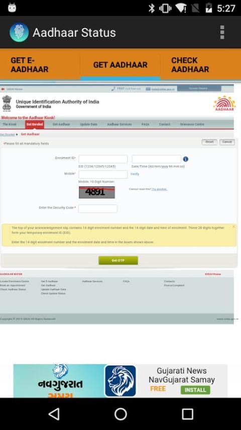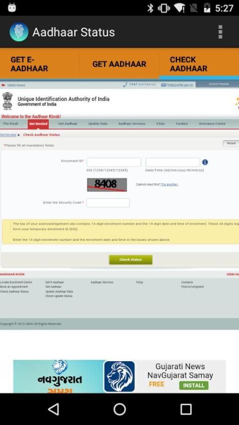 Following is the introduction of a wonderful App. 30,000+ users downloaded Aadhaar Status latest version on 9Apps for free every week! It truly does not offer any money. This hot app was released on 2016-03-06. Be sure that you check your current app before you start a run.