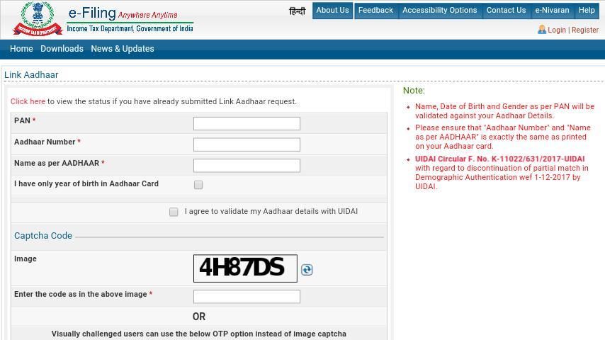 Card पैन कार्ड से आधार कार्ड लिंक