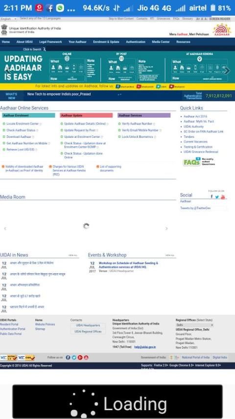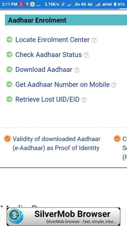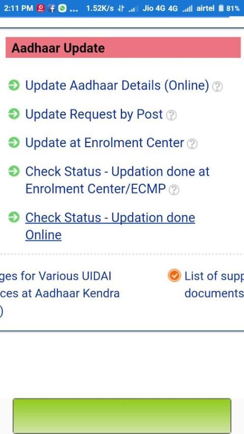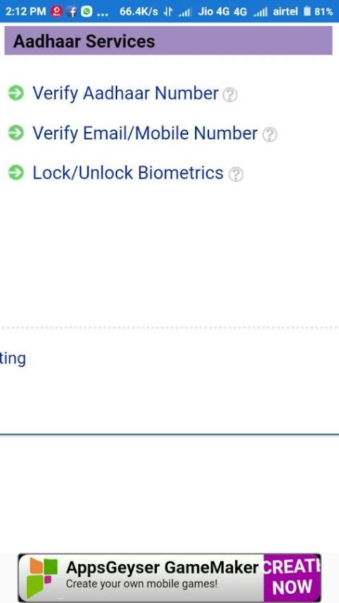 इस एप्लिकेशन पर आधार कार्ड के लिए ऑनलाइन सेवा -