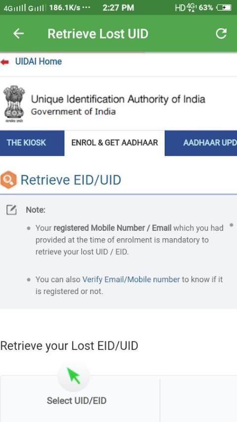 इस एप्लिकेशन पर आधार कार्ड के लिए ऑनलाइन सेवा -