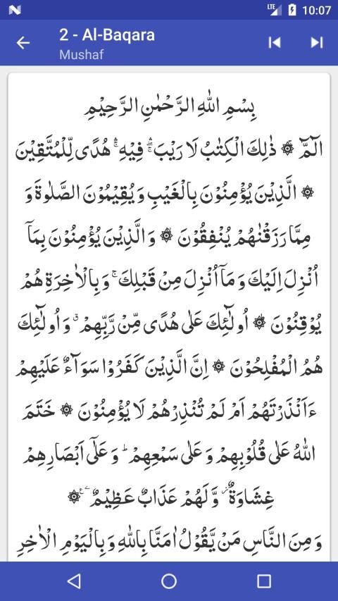 - Mushaf Mode: Recite Quran with Translation (Tarjuma) or Tafseer