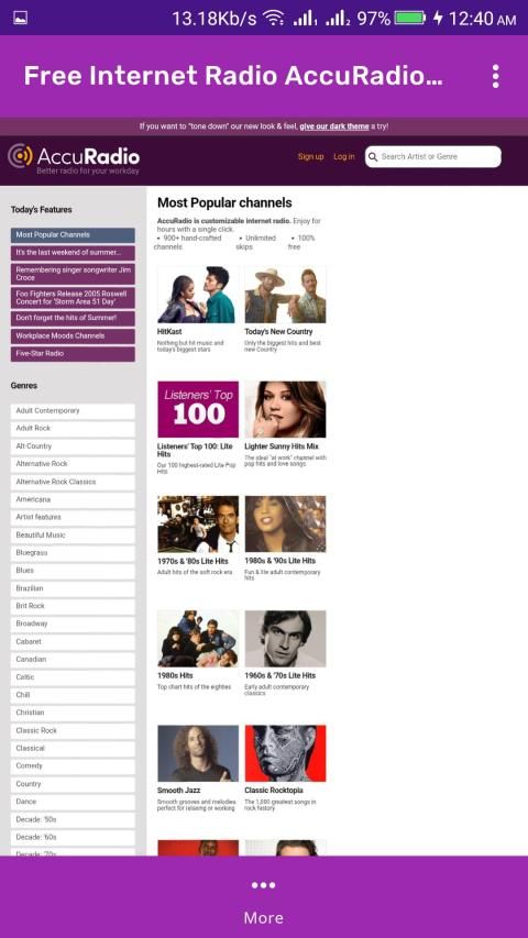 AccuRadio पर अपने सभी पसंदीदा शैलियों को मुफ्त में ऑनलाइन पाएं।
