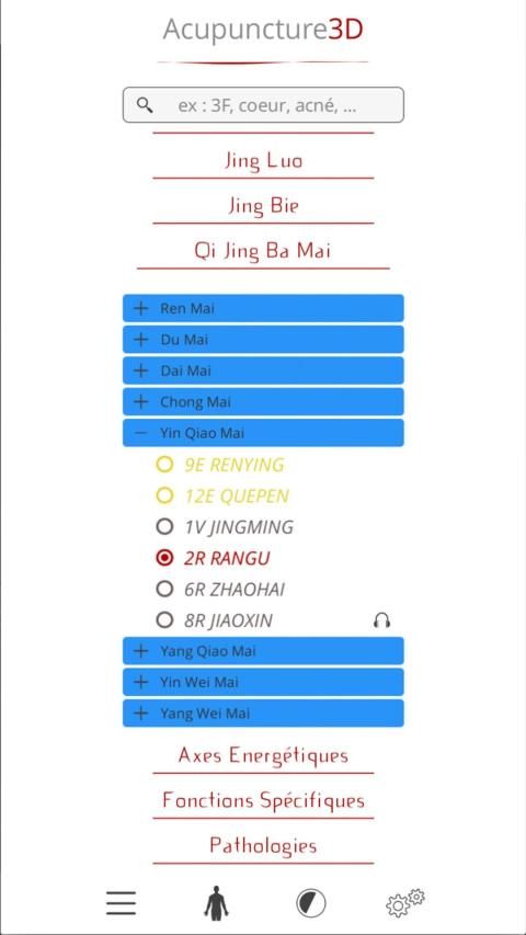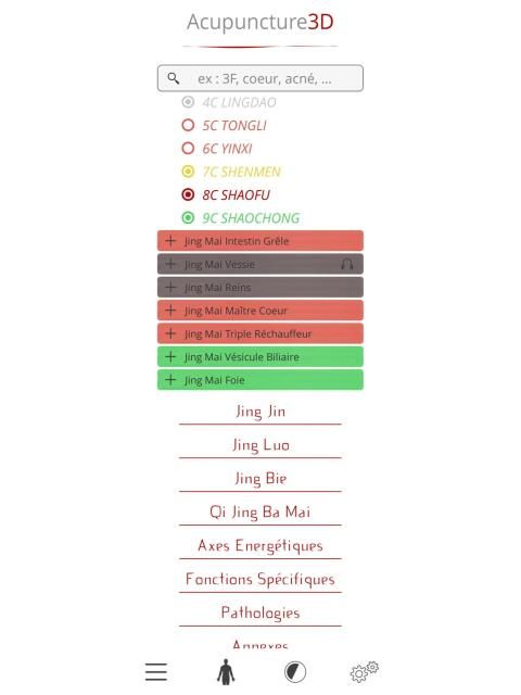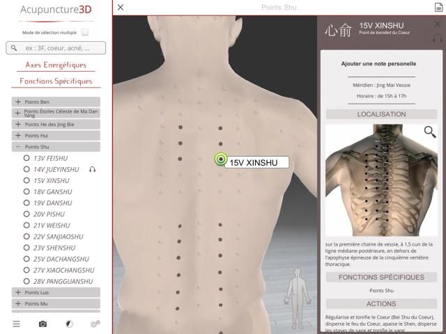 Apprenez les points par fonction en utilisant le menu fonctions spécifiques (ex: points Xi, points Tian, points Yuan…).