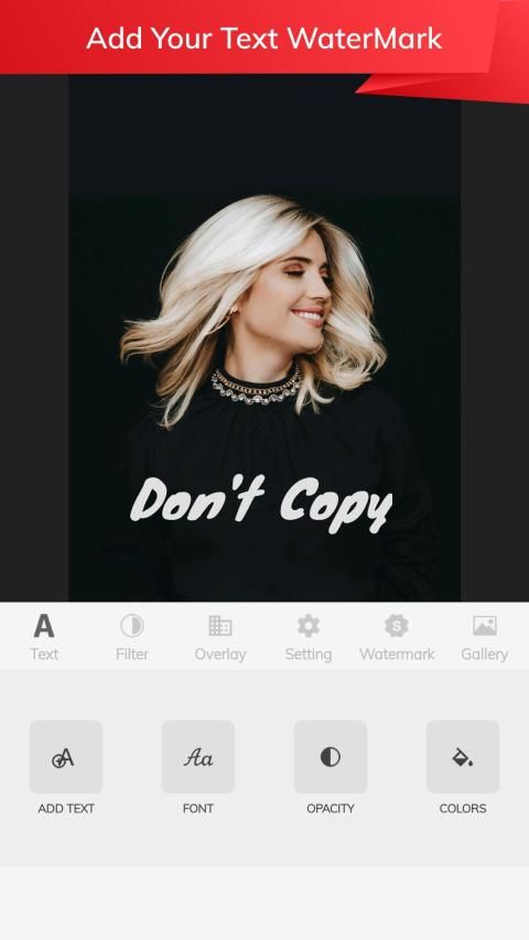 * अनुकूलन सेटिंग्स के साथ अपने पाठ वॉटरमार्क आसान जोड़ें।