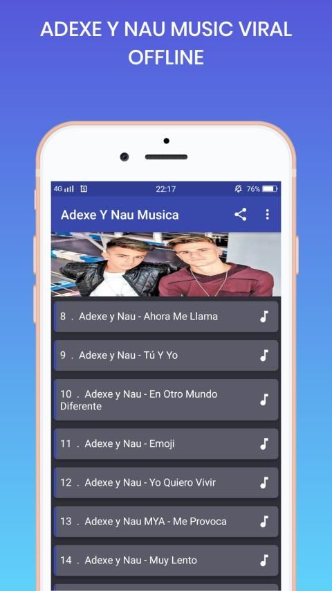 Adexe y Nau Musica Offline is viral musica song mp3 from Adexe Y Nau. This application is perfect for you, the application is also offline so you can play it anywhere at any time. This song collection has a good and clear song quality so it is comfortable to listen to (it is recommended to use a handsheat)