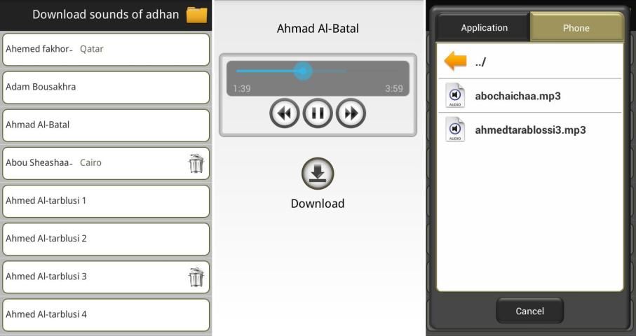 - Possibility to download other adhan sounds and use them in the Adhan muslim application.