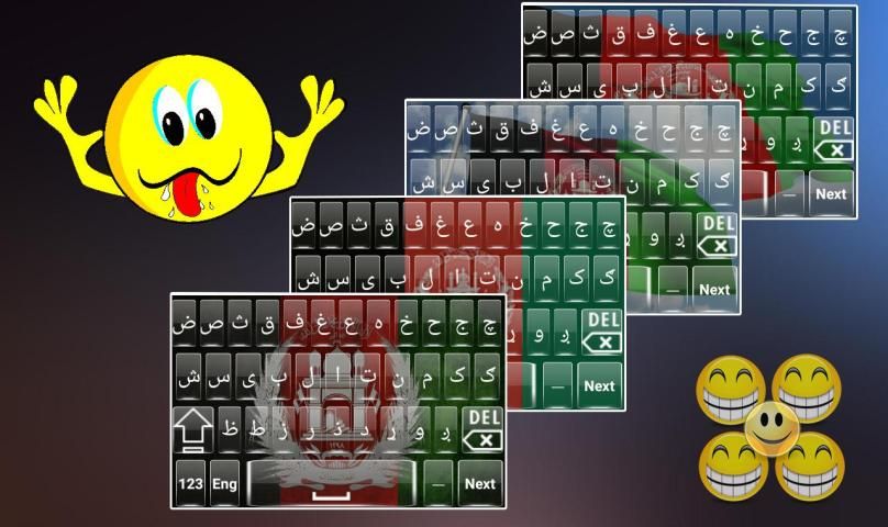 और यह भी इस कीबोर्ड उन लोगों को जो अंग्रेजी प्रारूप में लेख संदेश भेजना चाहते हैं और यह भी अफगान झंडे प्यार के लिए सिफारिश की है।