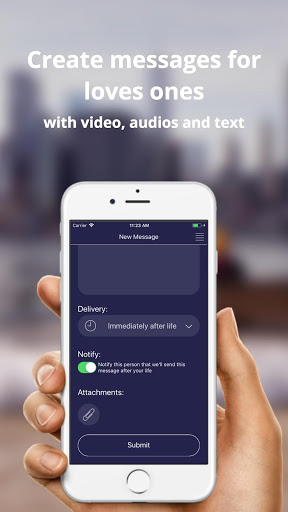 आफ्टरलाइफ एक मोबाइल एप्लिकेशन है जो आपको मल्टीमीडिया ईमेल संदेशों के माध्यम से जीवन के बाद अपने प्रियजनों के साथ संवाद करने की अनुमति देता है।