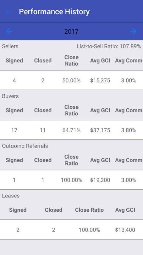 असली अंतर्दृष्टि: एप्लिकेशन को आपके नेतृत्व रूपांतरण, औसत कमीशन, सूची करने के लिए बेचने के अनुपात और अधिक गणना करता है। शक्तिशाली ग्राफिक्स और निर्मित विश्लेषण नीचे अपने व्यापार को तोड़ने को दिखाने के लिए आप छोटे परिवर्तन एक बड़ा अंतर कर सकते हैं।