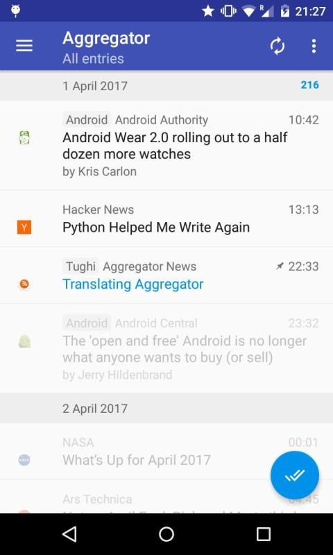एग्रीगेटर एंड्रॉयड समाचार रीडर से फिल्टर और उचित सूचनाएं लाता है।