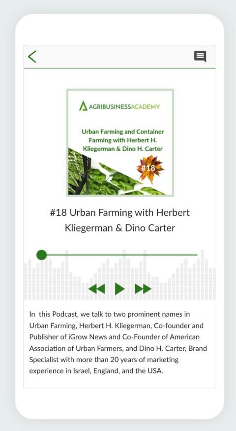 डाउनलोड करें और उद्योग के विशेषज्ञों और विचार नेताओं से उपलब्ध सामग्री, पॉडकास्ट और लेखों के साथ सीधे सीखना शुरू करें। कृषि व्यवसाय में प्रभाव पैदा करने, अवसरों को प्राप्त करने और नए उत्पादों / व्यवसायों को शुरू करने के लिए अपनी खुद की रणनीति विकसित करें।