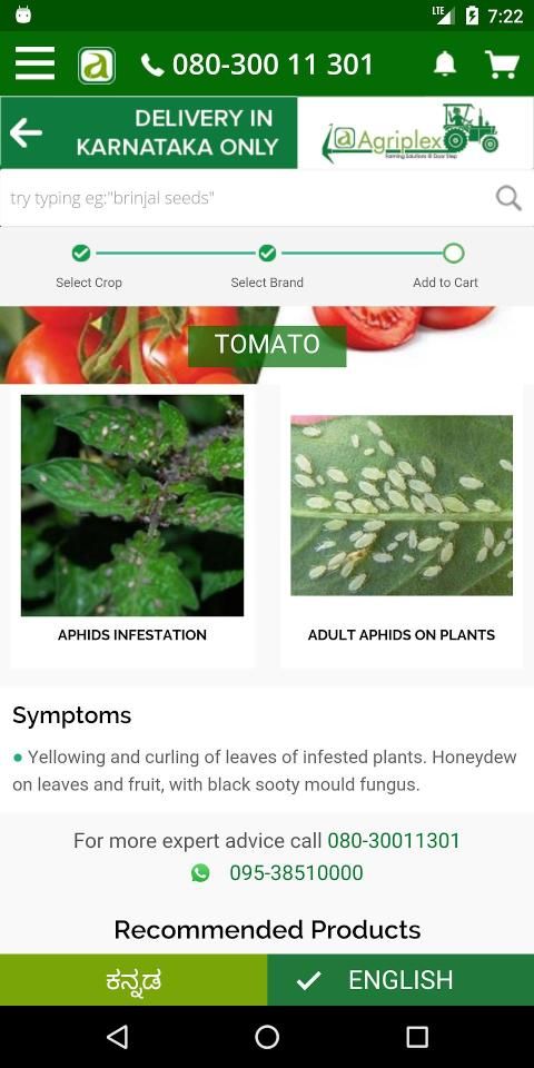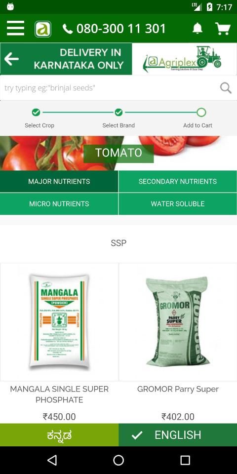 For the first time, Farmers get an option to choose wide variety of quality SEEDS, FERTILIZERS, PESTICIDES of Top Brands from our mobile application. At any point of time, Farmers can also call our HelpPoint center 080-61116333 to seek Free Agricultural advice.
