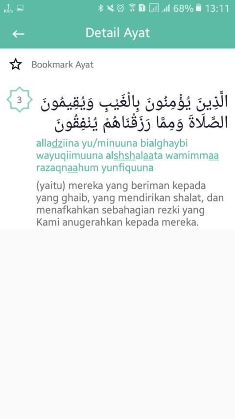 Di aplikasi ini ada fitur untuk menyimpan setiap ayat alqurannya loh yaitu fitur bookmark ayat,
