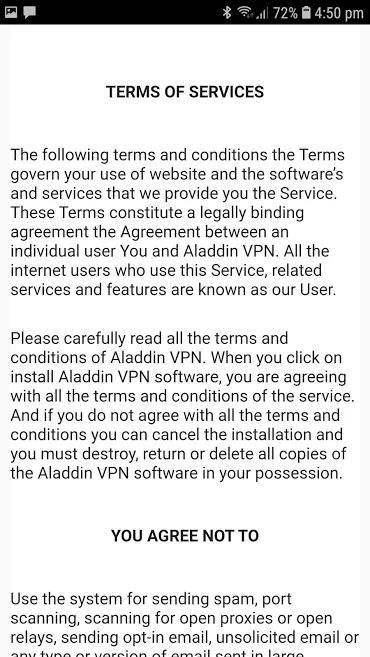 अलादीन वीपीएन ने एक डिवाइस से नेटवर्क पर इंटरनेट से कनेक्शन को एन्क्रिप्ट किया है ताकि यह सुनिश्चित हो सके कि संवेदनशील डेटा सुरक्षित रूप से प्रसारित किया गया है ताकि यह अनधिकृत लोगों को ट्रैफ़िक पर ईवसड्रॉपिंग से बचाता है और उपयोगकर्ता को दूरस्थ रूप से काम करने या ब्राउज़ करने की अनुमति देता है।