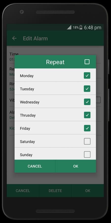 - अलार्म दोहरा - विशिष्ट दिन, सप्ताहांत पर दोहराता है, दैनिक या कभी नहीं