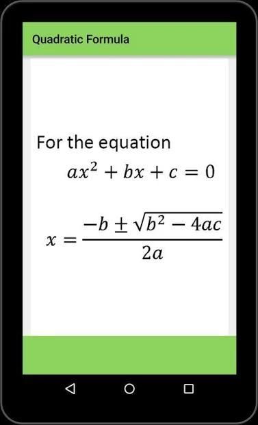 The app lists all the important Algebra Formula Solve My Math For Kids. Its very useful for student to save valuable time.