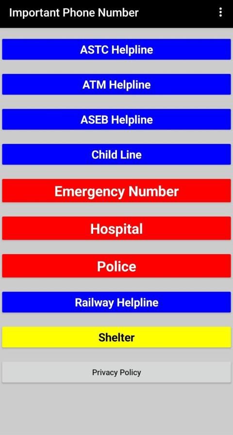 एएसटीसी हेल्पलाइन, एटीएम हेल्पलाइन, एएसईबी हेल्पलाइन, चाइल्ड लाइन, आपातकालीन नंबर, सभी अस्पताल, सभी डिस्ट्रिक्ट पुलिस फोन नंबर, रेलवे हेल्पलाइन