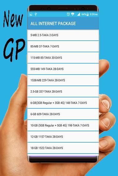 बांग्लादेश में जीपी मोबाइल इंटरनेट पैकेज