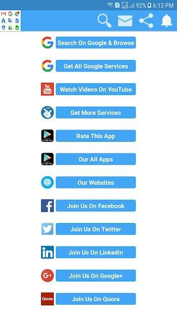 All Google Services is an ideal app that contains all the services from Google. Users can get all the services from Google through this app. Users can get the following Google services through this app-