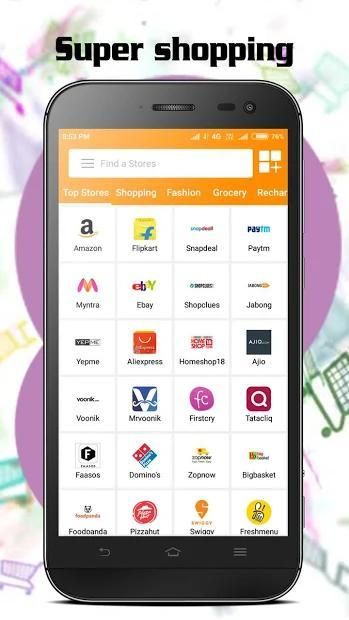 Tapzo, Nykaa, Big Basket, Amazon, Flipkart, Bluestone, AliExpress, Snapdeal, Shopcluses, Naaptol. Voonik, Quikr, Click.in, IRCTC, BookMyShow, TataCliq, Homeshop18, AJIO, Koovs, Craftvilla, Abof, Lime Road, Limeroad, Ali Express, FirstCry, Goibibo, bigbasket, paytm, bhim, And Many More 150+ shopping sites …….