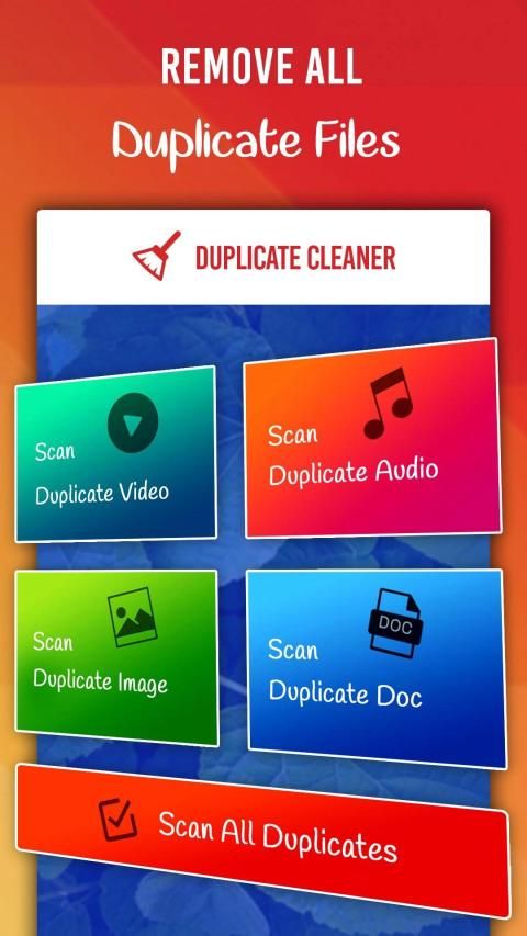 Just one app to scan & remove all duplicate videos, images, audio files & documents.