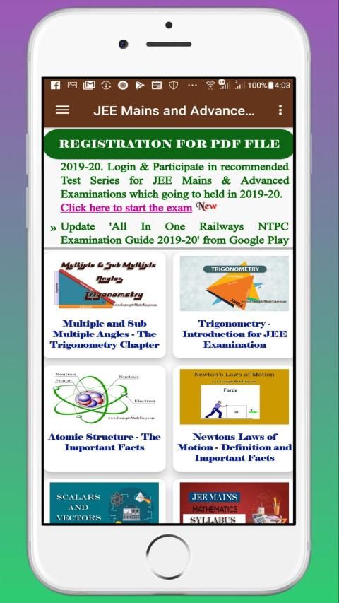 All In One JEE Mains and Advanced Examination Guide 2019-20 - Complete Guidance to Crack Any Examination. New Feature is Registration for Study Materials. All In One JEE Mains and Advanced Examination Guide 2019-20 is an android mobile application which provides awesome study materials for various examinations which can help to crack any examination.