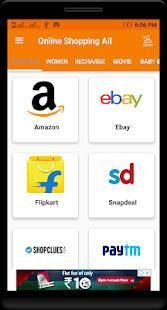 अखिल भारतीय शॉपिंग एप्लिकेशन पुनर्भरण और आसान खरीदारी के लिए, फैशन और इलेक्ट्रॉनिक्स की खरीदारी के लिए, भारतीय जीवन शैली के लिए, फैशन और परिधानों के लिए Flipkart अमेज़न Snapdeal Myntra, appearels और उपकरणों के लिए, पुरुषों और महिलाओं की खरीदारी के लिए, महिलाओं के लिए, Jabong Ajio Voonik भुगतान के लिए Paytm का समर्थन करता है खरीदारी, आसान ऑनलाइन खरीद और कई और अधिक के लिए ShopClues। आपको सिर्फ़ इस एक एप्लिकेशन रखने के लिए और आप अपने फोन में अन्य सभी अवांछित खरीदारी क्षुधा निकाल सकते हैं।