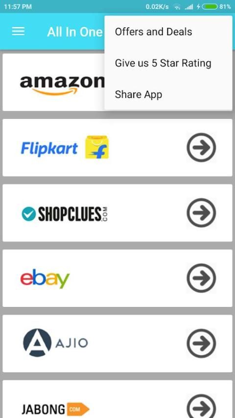 इस एप्लिकेशन के इस तरह के Flipkart, Amazon, Snapdeal, ईबे, Jabong, ShopClues, Myntra प्लस अधिक के रूप में सभी शीर्ष शॉपिंग शामिल ...