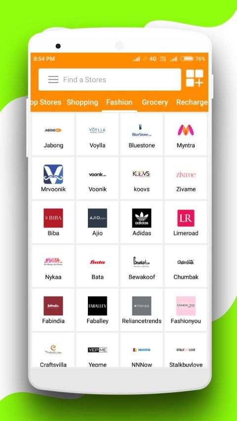 इस ऐप में भारत की सभी लोकप्रिय शॉपिंग वेबसाइटें शामिल हैं जिनमें फ्लिपकार्ट, एबे, AJIO, TATA Cliq, amazon, Jabong, myntra, shopclues, snapdeal, Paytm शामिल हैं।