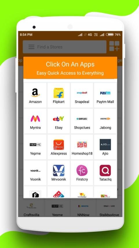 This app includes all popular shopping websites in India including flipkart, Ebay, AJIO, TATA Cliq, amazon, Jabong, myntra, shopclues, snapdeal, Paytm.