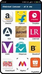 Hindustani Consumers All in one app for shopping, all in one online shopping apps India, all shopping apps in one site whatever you may call, this shopping app saves memory and battery. Its just 4MB lite all in one online shopping app.