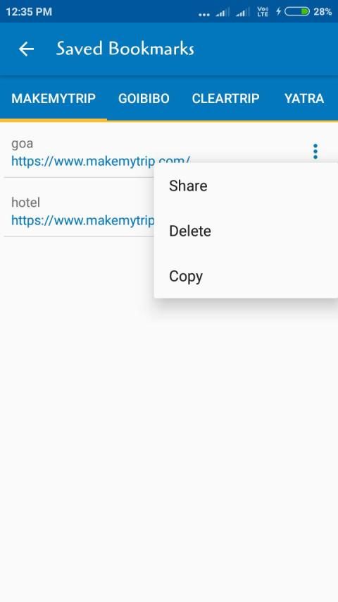 यहां आप अपने चुने हुए पृष्ठों को एक क्लिक में आसानी से बुकमार्क कर सकते हैं और बाद में आसानी से इसे चेक कर सकते हैं। बुकमार्क किए गए लिंक सूचीबद्ध हैं और विभिन्न साइटों से एक ही पृष्ठ में संग्रहीत हैं। इसके साथ ही आप इस ऐप में किसी भी साइट के किसी भी पेज को अपने किसी भी पसंदीदा ऐप जैसे मैसेंजर, जीमेल, फेसबुक, व्हाट्सएप आदि के माध्यम से साझा कर सकते हैं।