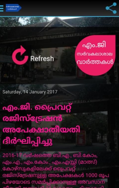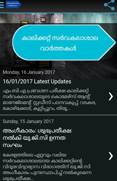 हम आपको केरल से इन प्रमुख विश्वविद्यालयों से खबर लाता है; एमजी यूनिवर्सिटी (Mahathma गांधी विश्वविद्यालय), केरल विश्वविद्यालय, कन्नूर विश्वविद्यालय, और कालीकट विश्वविद्यालय।