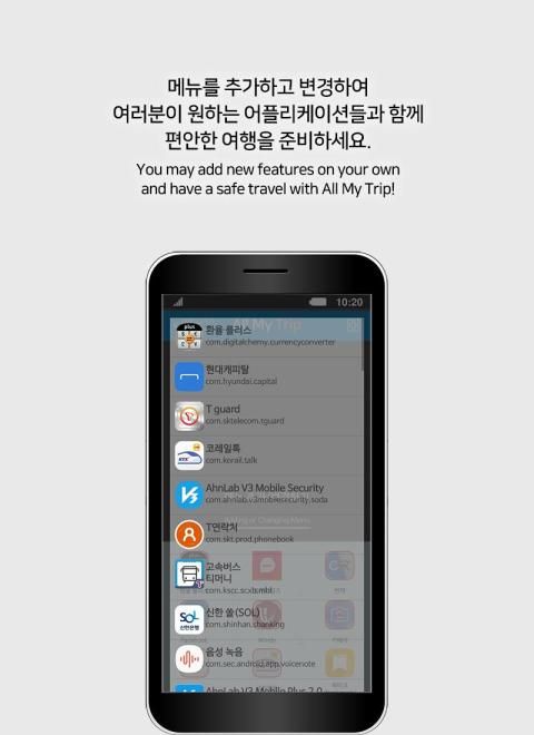 메뉴를 추가하고 변경하여 여러분이 원하는 어플리케이션들과 함께 편안한 여행을 준비하세요.