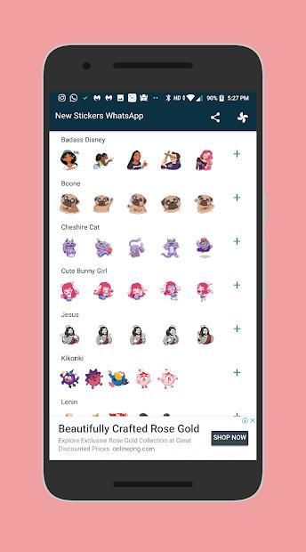 Installing this sticker for whatsapp messenger you can enjoy the large variety of free Badass Disney,Boone,Cheshire Cat,Cute Bunny Girl,Jesus,Kikoriki,Lenin,Marie,Russian Minds,Unicorn Stella.