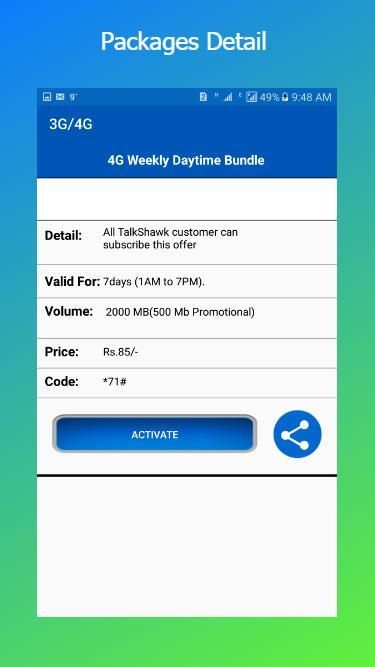 Pakistan All Sim Internet Packages 2019 consist of all necessary information which you need for daily use. You don’t need to remember tough and difficult code now. Pakistan All Sim Internet Packages 2019 app provide all call Packages information’s of Telenor, Zong, Mobilink/Warid and Ufone and other offers like Sim lagao offer. User can easily find the information about all types of Mobilink,Telenor,Zong and Ufone Call Offers. It also provide remaining voice minutes balance. Someone can subscribe all packages by just clicking the desire package. Pakistan All Sim Internet Packages 2019 are free and Updated.