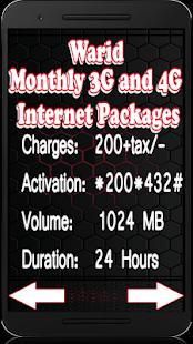 इस एप्लिकेशन के पास 3 जी, 4 जी इंटरनेट बंडलों की तरह पाकिस्तान नेटवर्क के इंटरनेट में जानकारी शामिल है।