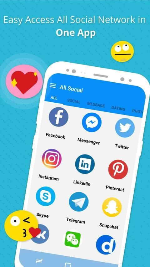 सभी सामाजिक मदद से आप एक ऐप में कई सामाजिक खाते लॉगिन कर सकते हैं। आपको किसी भी एप्लिकेशन को इंस्टॉल करने की ज़रूरत नहीं है, अधिक फ़ोटो, वीडियो के लिए अपने फ़ोन का स्थान सहेजें ...